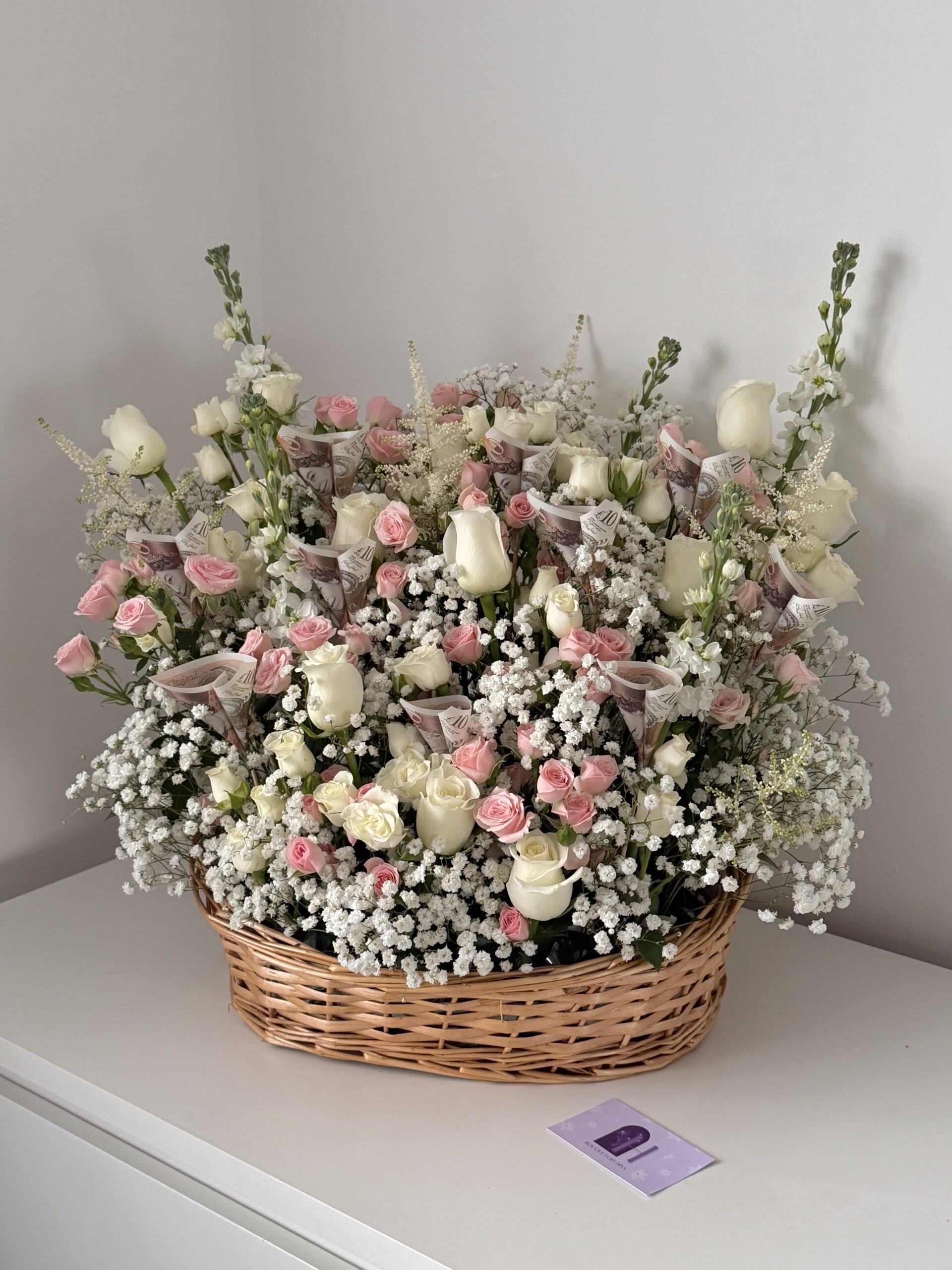 When the vibe is an indoor garden. A luxury 60 stem mix of florals, including roses, spray roses and filler flowers. (Money not included.)
